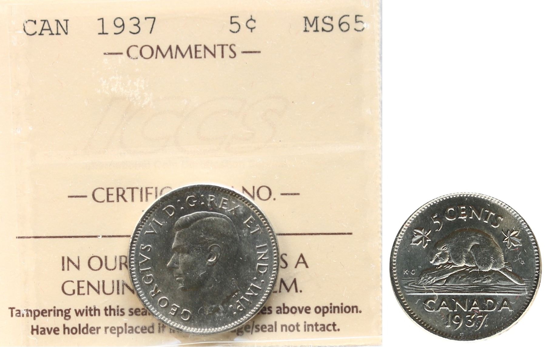 1937 5¢ "Dot" ICCS Gem Mint State-65