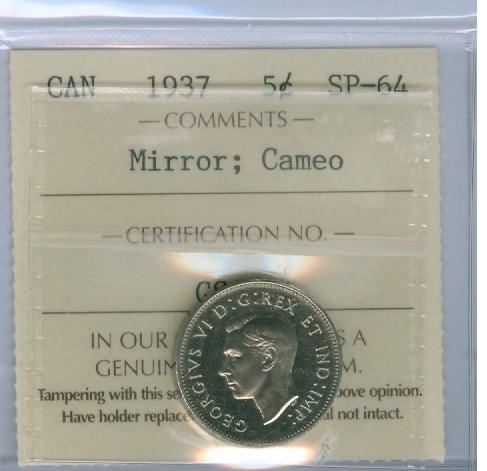 1937 5¢ ICCS Mirror, Cameo SP64.
