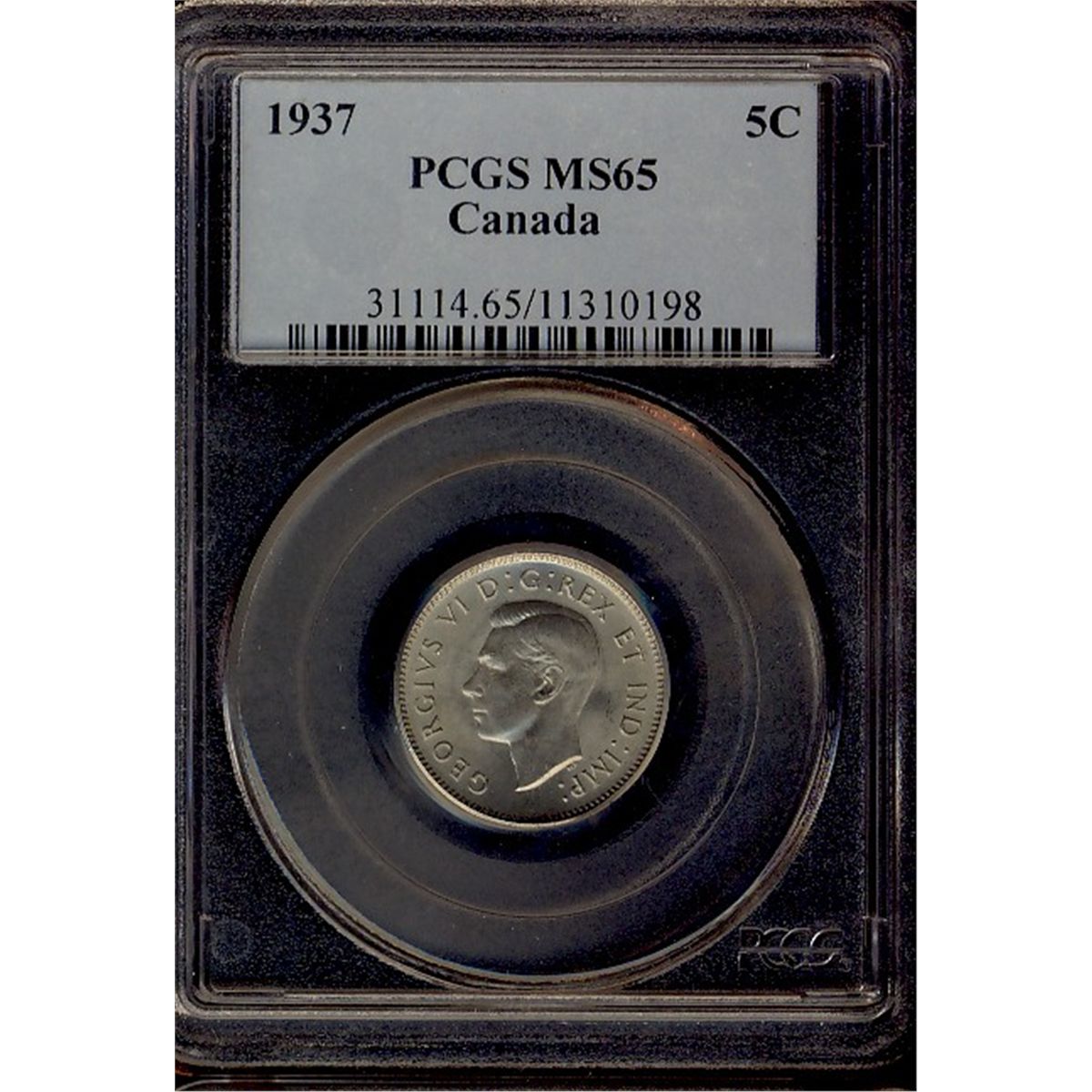 1937 5¢ PCGS MS65. A lovely Gem with full lustre.