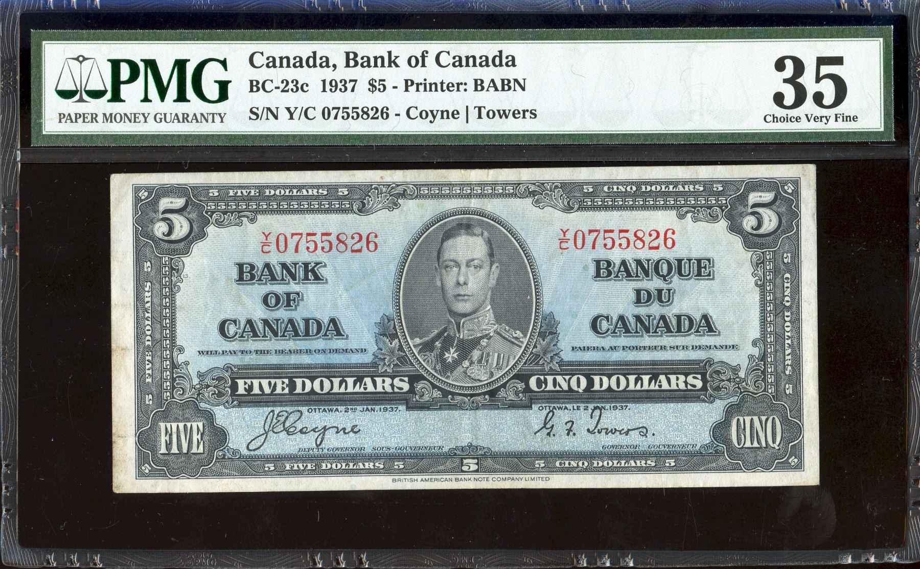1937 $5 #Y/C0755826 BC-23c, PMG VF-35.