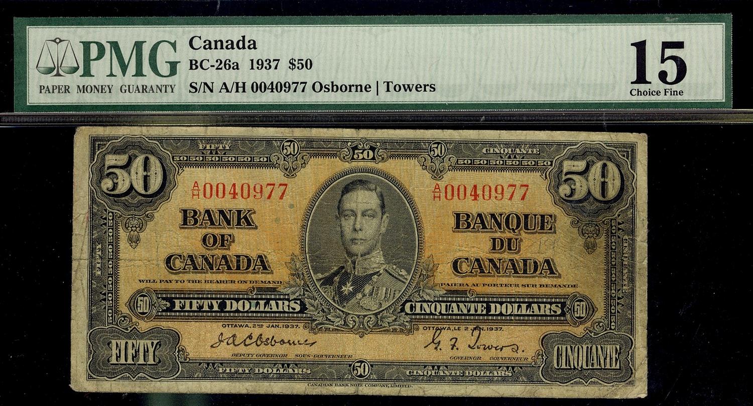 1937 $50 BC-26a #A/H0040977 PMG F15
