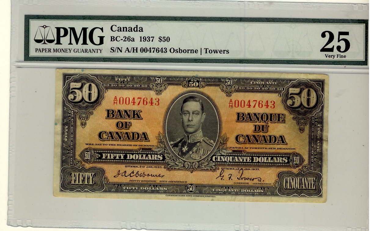 1937 $50 BC-26a A/H0047643 PMG VF25