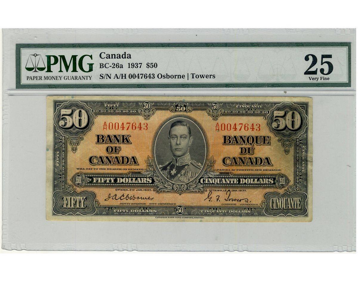 1937 $50 BC-26a #A/H0047643 PMG VF25.