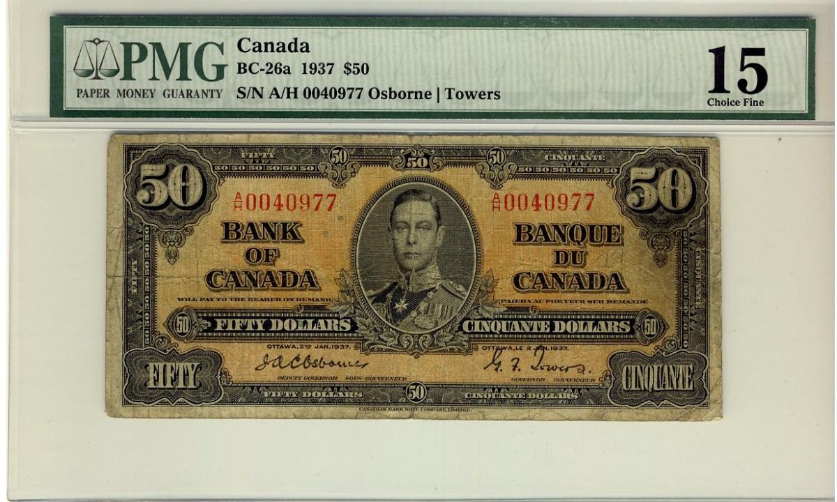 1937 $50 BC-26a #AH0040977 PMG CH F15. Osborne. Scarce