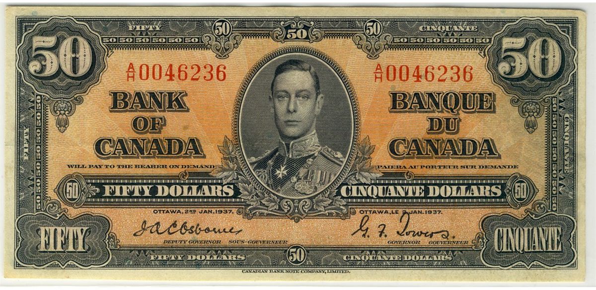 1937 $50 BC-26a #AH0046236. Sharp VF+ issue.