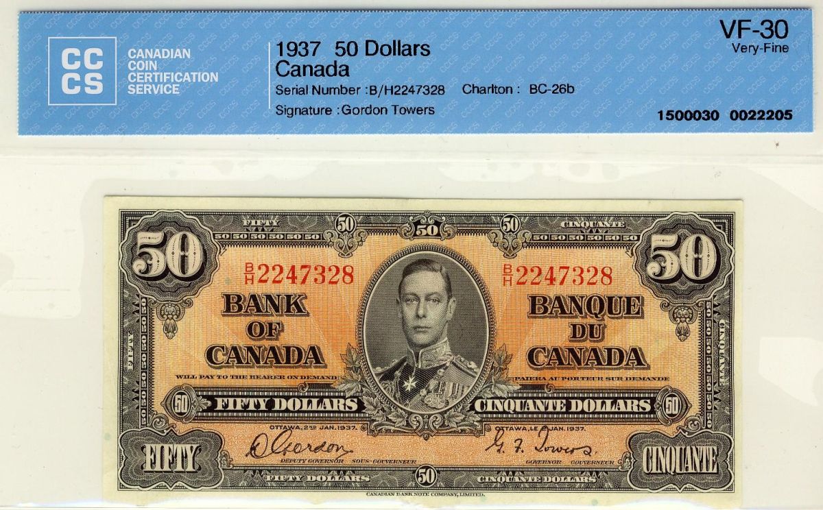 1937 $50 BC-26b #B/H2247328 CCCS VF30