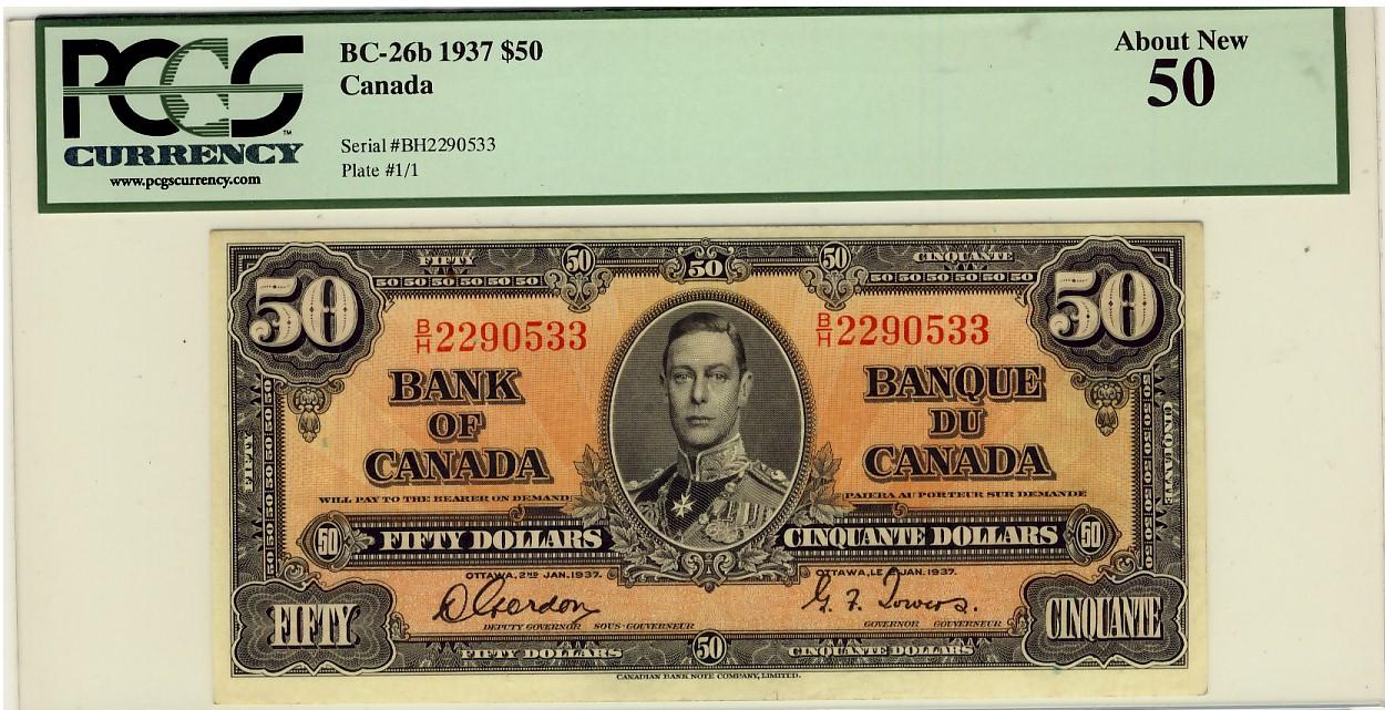 1937 $50 BC-26b B/H2290533 PCGS AU50
