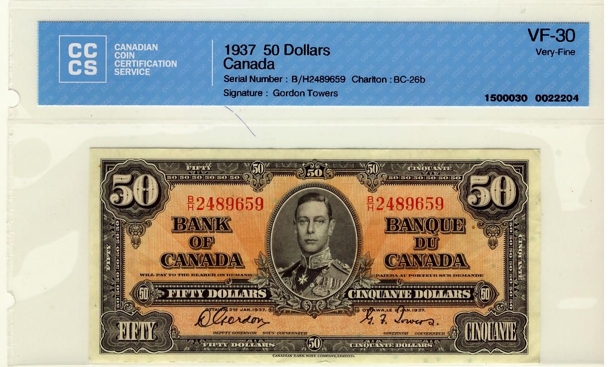 1937 $50 BC-26b #B/H2489659 CCCS VF30