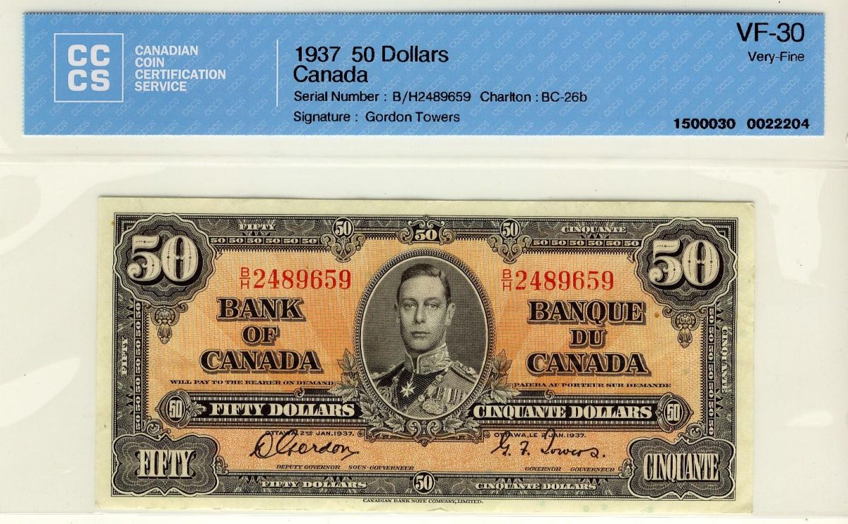 1937 $50 BC-26b #B/H2489659 CCCS VF30