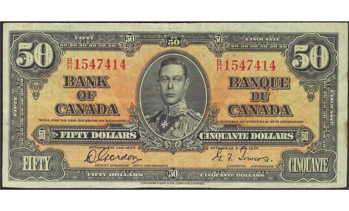1937 $50 BC-26b #BH1547414, CCCS VF30.