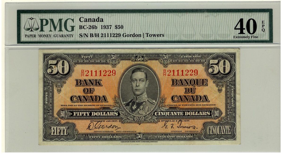 1937 $50 BC-26b /BH2111229 PMG EF40 EPQ,