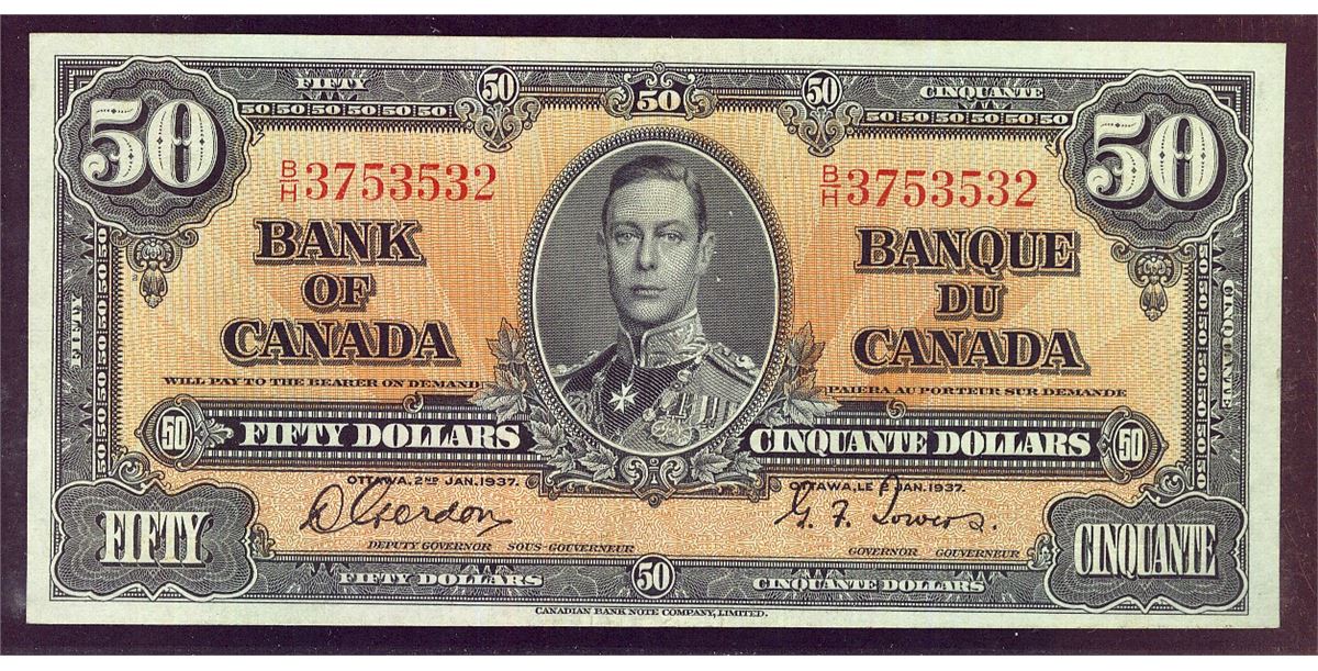 1937 $50 BC-26b #BH3753532, PMG AU58.