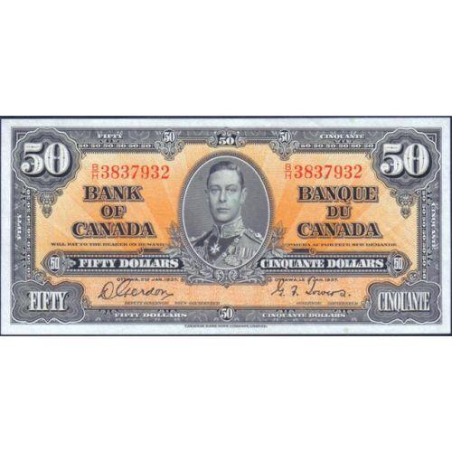 1937 Fifty Dollars Gordon-Towers, BC-26b Serial Number B/H3837932. Well centered, PMG Gem Uncirculated 66 Exceptional Paper Quality