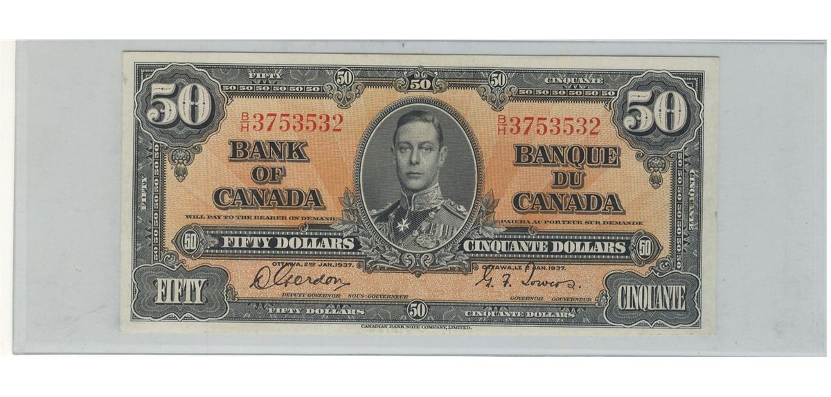 1937 $50 BC-26b SN#B/H3753532 PMG CH AU-58.