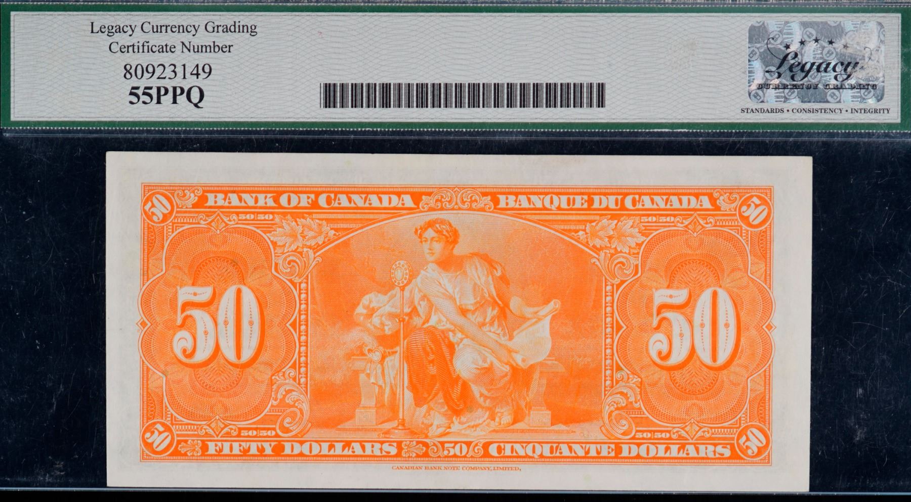 The cataloguer has taken every reasonable measure to ensure that all of the lots in this sale are as described and genuine. All raw coins and banknotes have been graded by the cataloger or the auction house which represent our best professional opinion. To grade coins and banknotes, we use Canadian grading standards, 42 years of experience and good conscience. However, grading is a subjective description in the opinion of the cataloger or the auction house. Among experts there are often differences of opinion on the grading and the eye appeal of a coin. The strike and the state of preservation are often debated. The Canadian Numismatic Company acts as an agent between consignors and buyers. The Canadian Numismatic Company does not guarantee that any coin or banknote cataloged will meet the standards, or the grade, of any third party grading companies. No warranty, whether impressed or implied. Items are as is, no warranty given. We cannot accept responsibility and waive all liability resulting in financial losses, and or incidentals accruing from the sale of any items, nor can we guarantee that items graded by third party services will grade the same if submitted to a different grading service or re-submitted to the same company. Statements by The Canadian Numismatic Company regarding the condition, the eye appeal, the strike and the population of items are for guidance only. All lots offered are sold "AS IS". Title to all lots remains with the auction house until paid for in full by the purchaser. But they are held at the risk of the purchaser once the time of the sale.