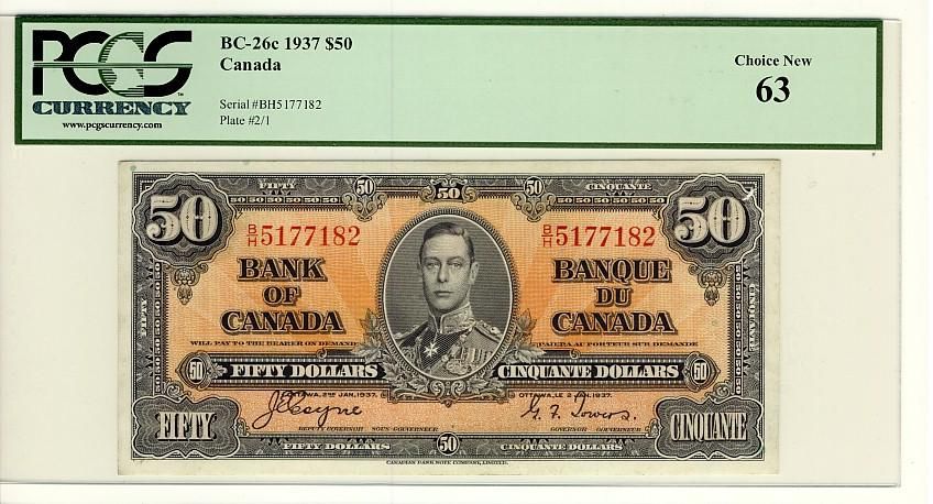 1937 $50 BC-26c B/H5177182 PCGS UNC63