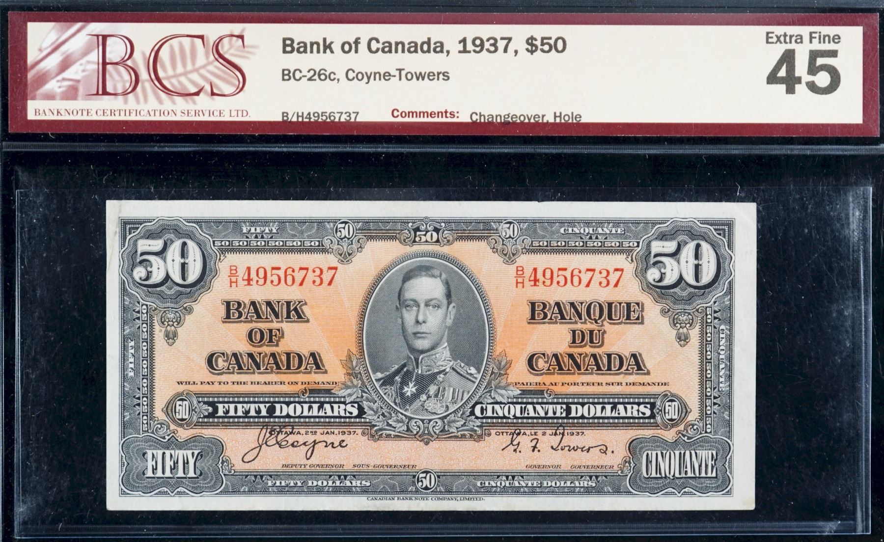 1937 $50 BC-26c #BH4956737, BCS EF45.