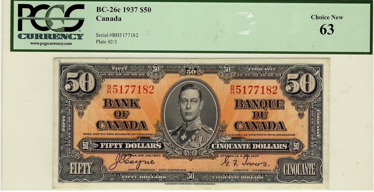 1937 $50 BC-26c #BH5177182, PCGS UNC63