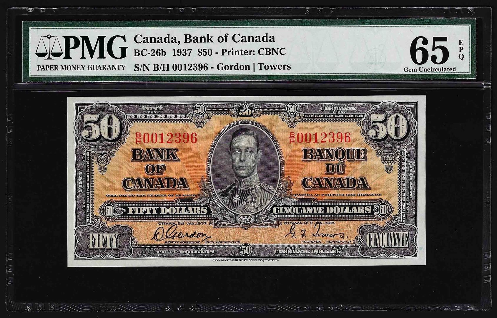 One 1937 $50 Bank of Canada Note PMG Gem Uncirculated 65EPQ. PMG Certified.