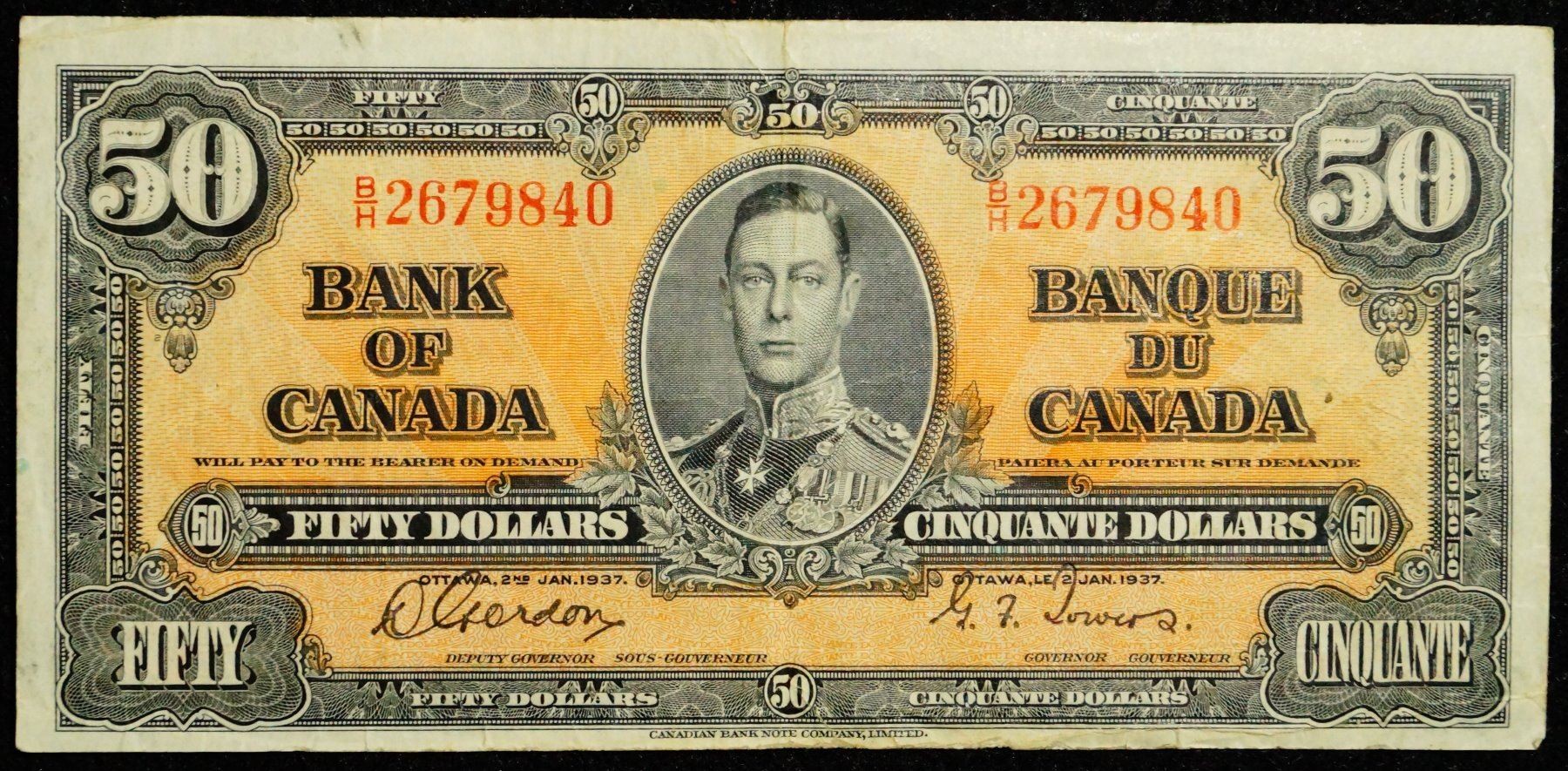 1937 $50 Dollar BC-26b, Bank of Canada banknote