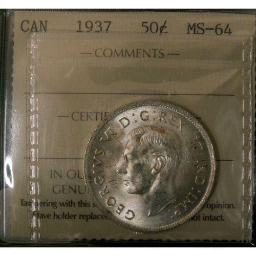 1937 50¢ ICCS MS64, fully brilliant and lustr