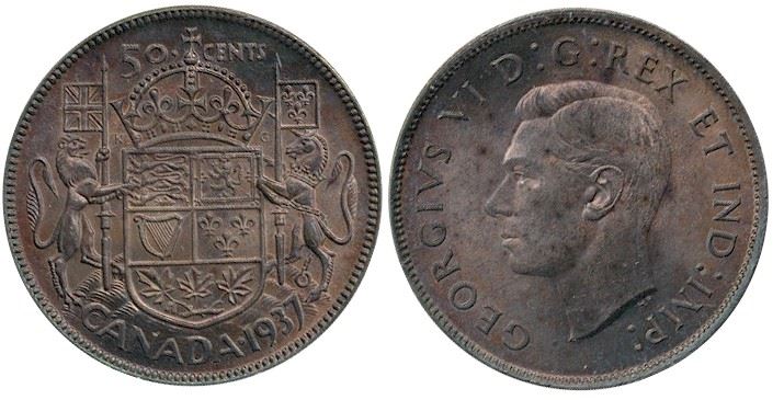 1937 50¢ ICCS MS65. Superb lustre through deep reds and golds.