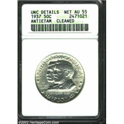 1937 50C Antietam--Cleaned--ANACS. Unc Details, Net AU55. A brilliant and lustrous Commemorative that is slightly glossy but free from hairlines. A small contact mark is hidden in a tree's foliage.From The Collection of Dennis Ridings. Important notice: We expect to be auctioning lots at the rate of 200-250 per hour. Sometimes eBay Premier live bid software cannot keep up with that pace, so we strongly recommend that you place a realistic proxy bid now as insurance to avoid disappointment. Also please note that all Heritage/CAA lots purchased through eBay Premier carry a 20% Buyer's Premium. Please make sure you read the Terms and Conditions.