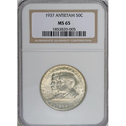 <B>1937 50C Antietam MS65 NGC.</B></I> Light golden toning graces the obverse of this frosty Gem. A highly appealing example that has pleasing detail and only a few small marks.<BR><BR><b>Shipping:</b> Coin/Currency (<a target="_blank" href="http://www.heritageauctions.com/common/shipping.php">view shipping information</a>)
