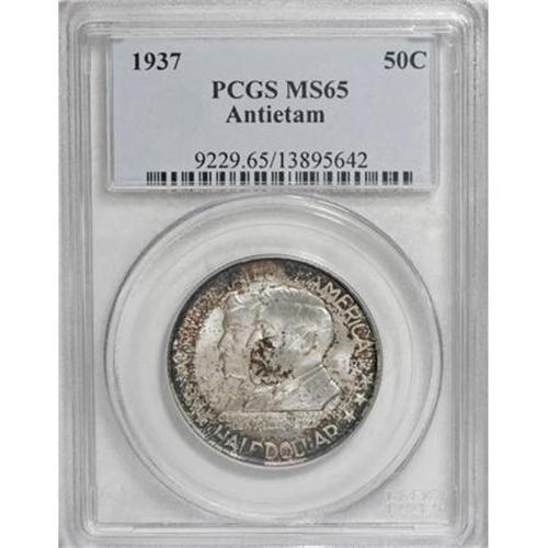 <B>1937 50C Antietam MS65 PCGS.</B></I> PCGS Population (1365/1253). NGC Census: (838/751). Mintage: 18,028. Numismedia Wsl. Price for NGC/PCGS coin in MS65: $805. (#9229)<BR><I>From The Frank DuVall Collection of U.S. Commemoratives.</B></I><BR><BR><b>Shipping:</b> Coins & Currency (<a target="_blank" href="http://www.heritageauctions.com/common/shipping.php">view shipping information</a>\)