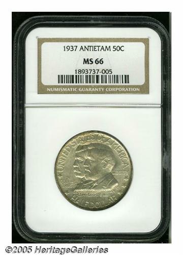 <B>1937<50C> Antietam MS66 NGC.</B></I> Smooth, nearly unblemished surfaces with only the slightest overlay of golden patina.<BR><I>From the Dr. Kurt Peters Collection.</B></I> From the Dr. Kurt Peters Collection.