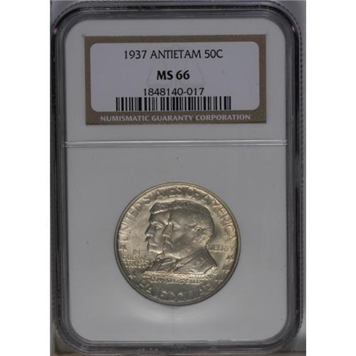 <B>1937<50C> Antietam MS66 NGC.</B></I> This lovely commemorative displays warm golden-tan color over radiantly lustrous surfaces. The design elements are sharply and evenly struck, and nary a mark is to be seen on the immaculately cared for surfaces.