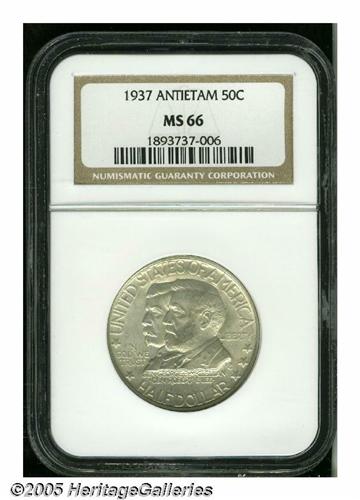 <B>1937<50C> Antietam MS66 NGC.</B></I> Well struck with satin luster and alabaster-gray surfaces that only show a couple of small milling marks, on the cheekbone of Robert E. Lee, and are otherwise virtually flawless. Pleasing and exquisitely preserved.<BR><I>From the Dr. Kurt Peters Collection.</B></I> From the Dr. Kurt Peters Collection.