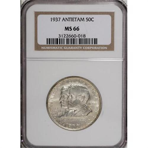 <B>1937 50C Antietam MS66 NGC.</B></I> Lustrous surfaces reveal light gold-tan color at the reverse margins, and an attentive strike sharpens the design elements. A few minute marks are consistent with the grade.<BR><I>From The John Stimson, Sr. Collection, Part Two.</B></I><BR><BR><b>Shipping:</b> Coins & Currency (<a target="_blank" href="http://www.heritageauctions.com/common/shipping.php">view shipping information</a>)