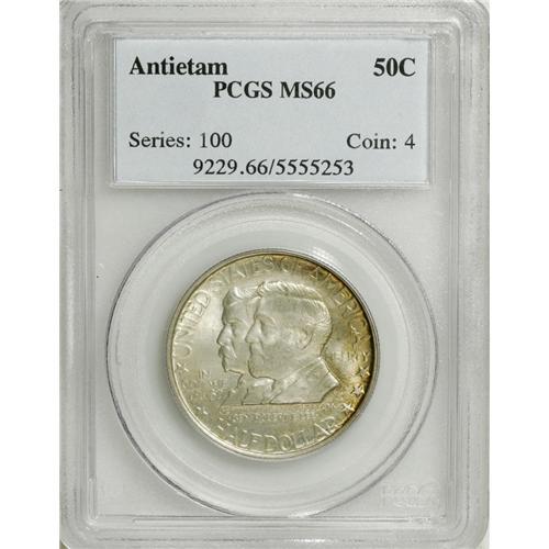 <B>1937 50C Antietam MS66 PCGS.</B></I> Caramel-gold and lime illuminate this lustrous and well struck Premium Gem. Even the demanding specialist will be pleased with this original and attractive example.<BR><BR><b>Shipping:</b> Coins & Currency (<a target="_blank" href="http://www.heritageauctions.com/common/shipping.php">view shipping information</a>)