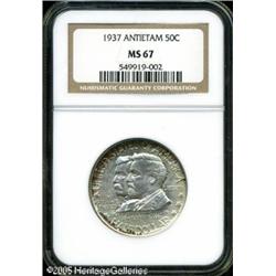 <B>1937 50C Antietam MS67 NGC.</B></I> An exemplary Antietam that appears essentially flawless. Each side presents a deeply patinated crimson-orange appearance along portions of the peripheries. Lot:8430