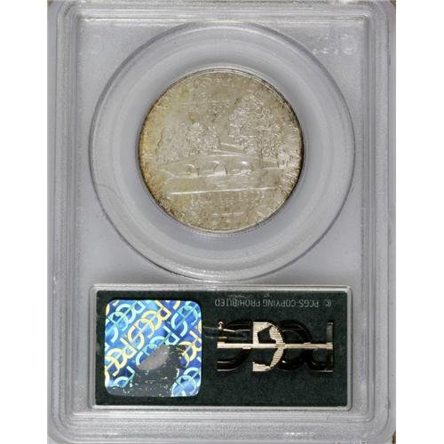 <B>1937 50C Antietam MS67 PCGS.</B></I> Cream-gray and powder-blue shades fill the fields and devices, while the margins exhibit sea-green and orange hues. A well preserved and delightfully toned Superb Gem. Certified in a green label holder.<BR><BR><b>Shipping:</b> Coins & Currency (<a target="_blank" href="http://www.heritageauctions.com/common/shipping.php">view shipping information</a>)