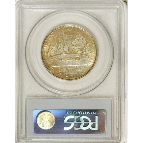 <B>1937 50C Antietam MS67 PCGS.</B></I> When William Marks Simpson designed this commemorative, he chose the likenesses of opposing officers, General McClellan for the North and General Lee for the South, for the obverse design. This lustrous Superb Gem has vivid gold toning covering most of the obverse and reverse surfaces.<BR><BR><b>Shipping:</b> Coins & Currency (<a target="_blank" href="http://www.heritageauctions.com/common/shipping.php">view shipping information</a>)