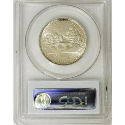 <B>1937 50C Antietam MS67 PCGS.</B></I> An extraordinarily clean and well produced example of the Antietam commemorative type, struck to mark the seventy-fifth anniversary of the Civil War's second-bloodiest battle. Beautifully struck and immaculately preserved, with lovely satin luster and light peripheral toning. Included with the lot is an original 174cm x 151cm card announcing the Antietam half dollars; an application for Antietam half dollars; and a five-slot cardboard holder. All three additional items were issued by the Washington County Historical Society.<BR><I>From The Frank DuVall Collection of U.S. Commemoratives.</B></I><BR><BR><b>Shipping:</b> Coins & Currency (<a target="_blank" href="http://www.heritageauctions.com/common/shipping.php">view shipping information</a>\)
