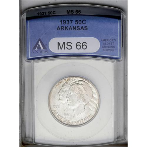 1937 50C Arkansas MS66 ANACS. A shimmering, silver-gra 1937[50C] Arkansas MS66 ANACS.
