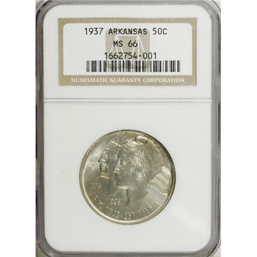 1937 50C Arkansas MS66 NGC. A mixture of vivid gold, l