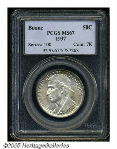 1937 50C Boone MS67 PCGS. Blemish-free, the thick