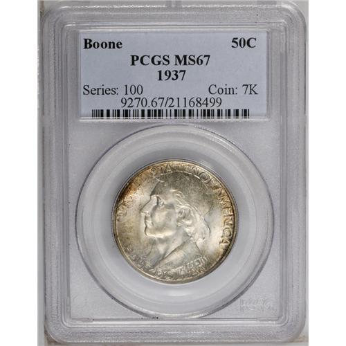 1937 50C Boone MS67 PCGS. Highly lustrous and sharply