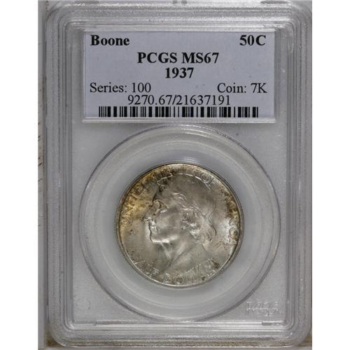 1937 50C Boone MS67 PCGS. Russet patina covers parts o