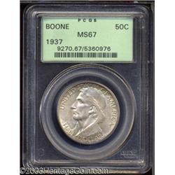 <table><tr><td><TABLE cellSpacing=0 cellPadding=0 width="100%" bgColor=#000000 border=0><TBODY> <TR><TD width="100%"><TABLE cellSpacing=1 cellPadding=3 width="100%" border=0><TBODY><TR><TD width="100%" bgColor=#79735c><FONT face=arial color=#ffffff size=3><B>Description</B> </FONT></TD></TR><TR><TD width="100%" bgColor=#ffffff><FONT face=arial size=2><B>1937 50C Boone MS67 PCGS.</B></I> Nearly blemish-free with speckled gray-golden obverse toning that gravitates to the border. </FONT></TD></TR></TBODY></TABLE></TD></TR></TBODY></TABLE><BR><A name=PricesRealized></A><TABLE cellSpacing=0 cellPadding=0 width="100%" bgColor=#000000 border=0><TBODY><TR><TD width="100%"><TABLE cellSpacing=1 cellPadding=3 width="100%" border=0><TBODY><TR><TD width="100%" bgColor=#79735c><A name=PR><FONT face=arial color=#ffffff size=3><B>Previous Prices from Heritage Auctions</B> </FONT></A></TD></TR><TR><TD bgColor=#f6f6ed><TABLE cellSpacing=0 cellPadding=0 width="100%" border=1><TBODY><TR><TD align=middle width="33%"><B>Date</B></TD><TD align=middle width="33%"><B>Service</B></TD><TD align=middle width="33%"><B>Price</B></TD></TR><TR bgColor=whitesmoke><TD width="33%"><B>02/25/2003</B></TD><TD width="33%">NGC</TD><TD width="33%">$862.50</TD></TR><TR bgColor=whitesmoke><TD width="33%"><B>12/31/2002</B></TD><TD width="33%">NGC</TD><TD width="33%">$920.00</TD></TR><TR bgColor=whitesmoke><TD width="33%"><B>07/03/2001</B></TD><TD width="33%">PCGS</TD><TD width="33%">$1,450.00</TD></TR><TR bgColor=whitesmoke><TD width="33%"><B>09/20/2003</B></TD><TD width="33%">NGC</TD><TD width="33%">$793.50</TD></TR><TR bgColor=whitesmoke><TD width="33%"><B>09/20/2003</B></TD><TD width="33%">NGC</TD><TD width="33%">$529.00</TD></TR><TR bgColor=whitesmoke><TD width="33%"><B>03/01/2003</B></TD><TD width="33%">NGC</TD><TD width="33%">$948.75</TD></TR><TR bgColor=whitesmoke><TD width="33%"><B>09/28/2002</B></TD><TD width="33%">NGC</TD><TD width="33%">$862.50</TD></TR><TR bgColor=whitesmoke><TD width="33%"><B>07/30/2002</B></TD><TD width="33%">PCGS</TD><TD width="33%">$920.00</TD></TR><TR bgColor=whitesmoke><TD width="33%"><B>07/30/2002</B></TD><TD width="33%">PCGS</TD><TD width="33%">$1,150.00</TD></TR><TR bgColor=whitesmoke><TD width="33%"><B>04/27/2002</B></TD><TD width="33%">PCGS</TD><TD width="33%">$977.50</TD></TR><TR bgColor=whitesmoke><TD width="33%"><B>02/23/2001</B></TD><TD width="33%">NGC</TD><TD width="33%">$460.00</TD></TR><TR bgColor=whitesmoke><TD width="33%"><B>11/17/2000</B></TD><TD width="33%">PCGS</TD><TD width="33%">$805.00</TD></TR><TR bgColor=whitesmoke><TD width="33%"><B>11/18/1999</B></TD><TD width="33%">PCGS</TD><TD width="33%">$1,667.50</TD></TR><TR bgColor=whitesmoke><TD width="33%"><B>01/10/1998</B></TD><TD width="33%">NGC</TD><TD width="33%">$690.00</TD></TR><TR bgColor=whitesmoke><TD width="33%"><B>02/22/1997</B></TD><TD width="33%">NGC</TD><TD width="33%">$770.00</TD></TR><TR bgColor=whitesmoke><TD width="33%"><B>02/02/1996</B></TD><TD width="33%">PCGS</TD><TD width="33%">$935.00</TD></TR></TBODY></TABLE></TD></TR><TR><TD bgColor=#ffffff><FONT face=arial size=1 ?>PLEASE NOTE: All prices realized reflect the final hammer price PLUS the buyer's premium in auctions that charge a buyer's premium. Each item has a notation at the top of the listing indicating whether that lot included a buyer's premium. Example: A item that sells with a final hammer price of $100 and a 20% buyer's premium will display with a price realized of $120. All information listed is intended to be as accurate as possible, but errors are possible. Please use this guide carefully and inform us of any inaccuracies. </FONT></TD></TR></TBODY></TABLE></TD></TR></TBODY></TABLE><BR><TABLE cellSpacing=0 cellPadding=0 width="100%" bgColor=#000000 border=0><TBODY><TR><TD width="100%"><TABLE cellSpacing=1 cellPadding=3 width="100%" border=0><TBODY><TR><TD width="100%" bgColor=#79735c colSpan=6><FONT face=arial color=#ffffff size=3><B>Price Guide*</B> </FONT></TD></TR><TR bgColor=#f6f6ed><TD align=middle><B>Grade</B> </TD><TD align=middle><B>Coin World<BR>(Trends)</B> </TD><TD align=middle><B>Numismedia<BR>Retail</B> </TD><TD align=middle><B>Numismedia<BR>Wholesale</B> </TD><TD align=middle><B>Coin<BR>Universe</B> </TD><TD align=middle><B>Heritage<BR>Value Index</B> </TD></TR><TR bgColor=#ffffff><TD align=middle>66</TD><TD align=right>---</TD><TD align=right>$310.00</TD><TD align=right>$248.00</TD><TD align=right>$350.00</TD><TD align=right>$236.78</TD></TR><TR style="FONT-WEIGHT: bold" bgColor=#cccfdd><TD align=middle>67</TD><TD align=right>---</TD><TD align=right>---</TD><TD align=right>$975.00</TD><TD align=right>$1,750.00</TD><TD align=right>$1,100.00</TD></TR><TR bgColor=#ffffff><TD align=middle>68</TD><TD align=right>---</TD><TD align=right>---</TD><TD align=right>---</TD><TD align=right>---</TD><TD align=right>---</TD></TR><TR bgColor=#ffffff><TD colSpan=6><FONT size=1>*All information listed is intended to be as accurate as possible, but errors are possible. No item may be returned or refused based on this information which is provided as a service to our customers. You should contact each pricing source directly to determine the accuracy of this information. </FONT></TD></TR></TBODY></TABLE></TD></TR></TBODY></TABLE><BR><TABLE cellSpacing=0 cellPadding=0 width="100%" bgColor=#000000 border=0><TBODY><TR><TD width="100%"><TABLE cellSpacing=1 cellPadding=3 width="100%" border=0><TBODY><TR><TD width="100%" bgColor=#79735c><FONT face=arial color=#ffffff size=3><B>Population Guide</B> </FONT></TD></TR><TR bgColor=#ffffff><TD align=middle><!-- Begin Output of Population Grid--><TABLE cellSpacing=0 cellPadding=0 width="100%" border=0><TBODY><TR><TD vAlign=center><TABLE cellSpacing=0 width="100%" border=1 cellsadding="3"><TBODY><TR><TD vAlign=center><TABLE cellSpacing=0 cellPadding=3 width="100%" border=1><TBODY><TR><TD vAlign=center align=middle bgColor=#f0f1e8 colSpan=2 <CENTER><FONT face=Arial size=2><B>PCGS Pop </B></FONT><CENTER></CENTER></TD>