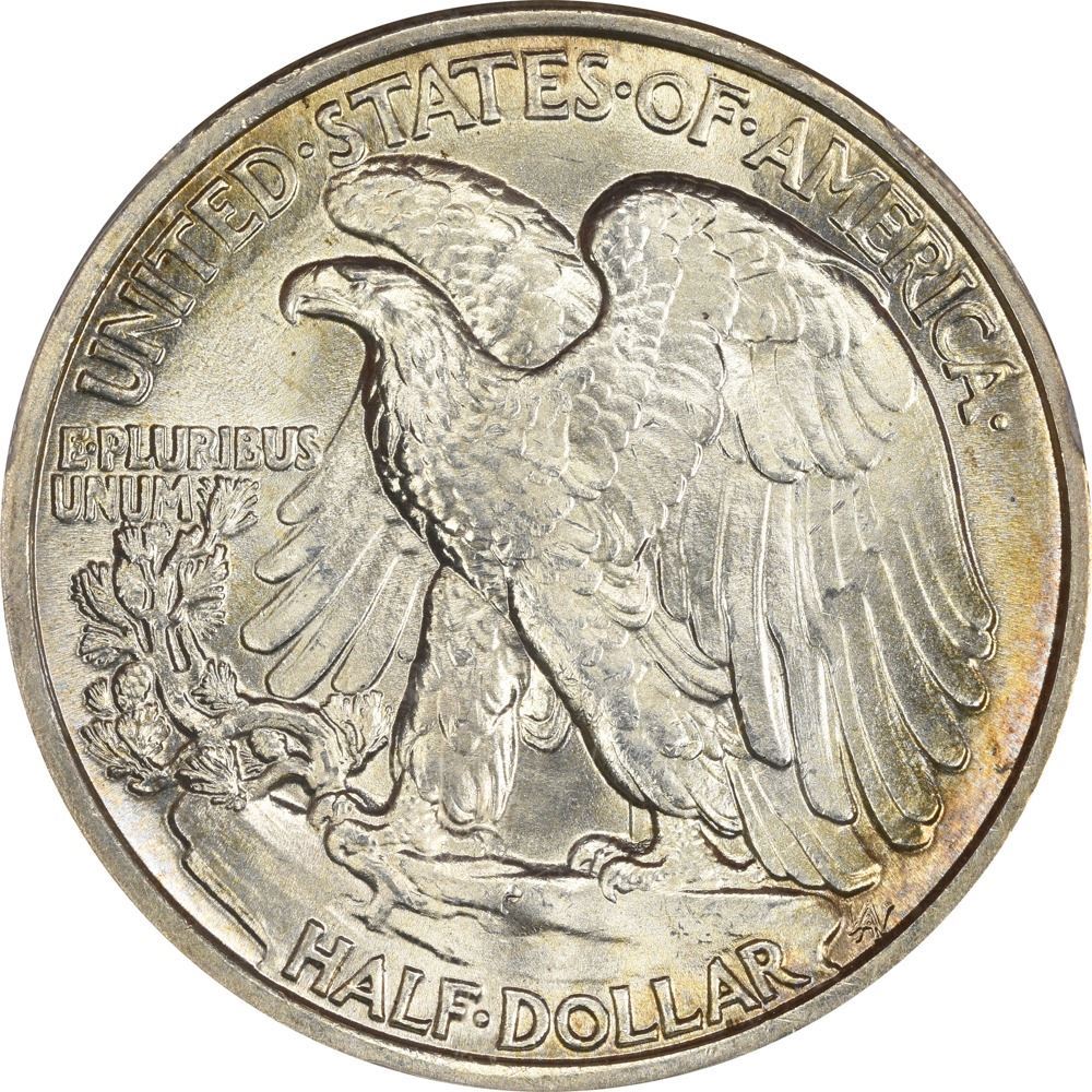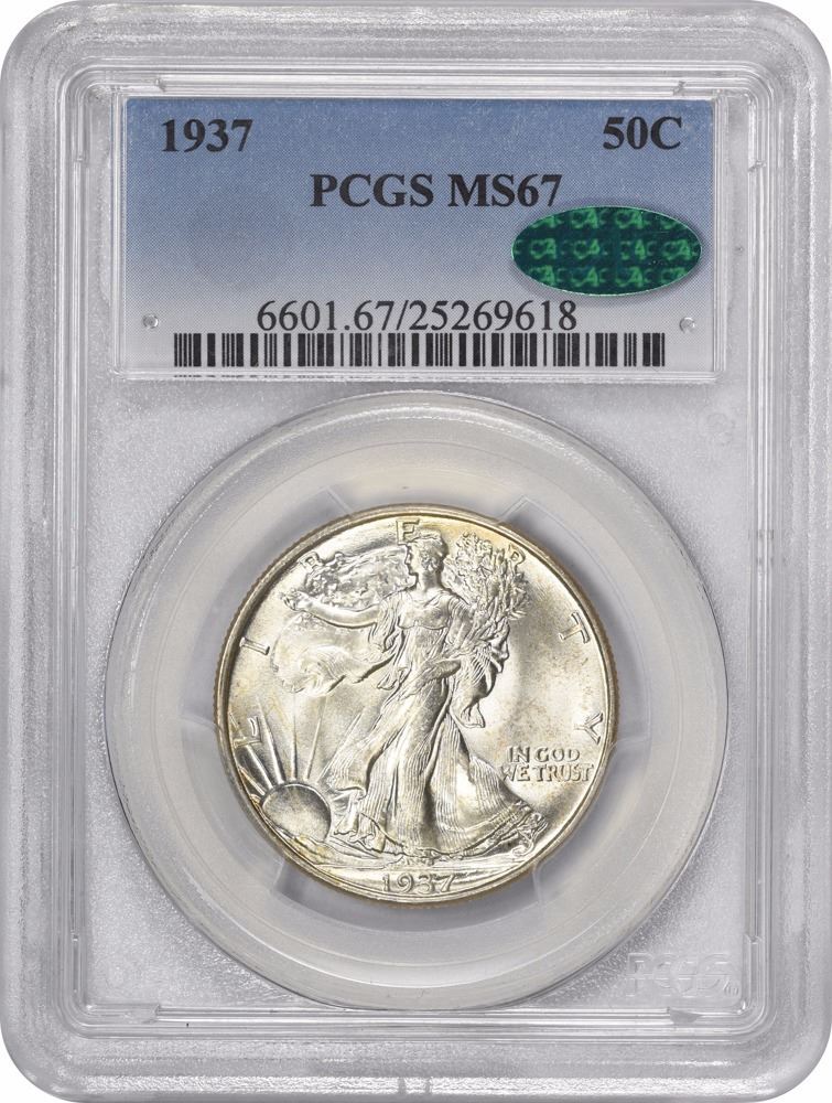 This sharp and frosty Gem half dollar displays warm sunset orange iridescence at the rims that heightens the overall visual appeal greatly. The strike of this piece is perhaps the finest of any specimen offered so far – it is that bold and offers finger and stem separation not often seen on circulation strikes of any date, plus full head and hair details for Miss Liberty. Only eight grading events at a higher grade have been listed at PCGS, all of those MS-68. By now you know our feelings on statistics such as this – the small group of “finer” coins are probably in Registry Sets or other private holdings. We won’t say any more regarding the opportunity offered here.