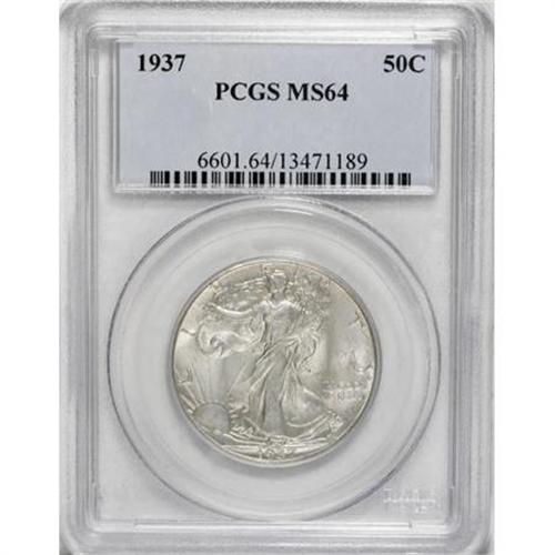<B>1937 50C MS64 PCGS.</B></I> PCGS Population (1272/1832). NGC Census: (743/1324). Mintage: 9,527,728. Numismedia Wsl. Price for NGC/PCGS coin in MS64: $86. (#6601)<BR><BR><B>Coin Engraver:</B> Adolph A. Weinman<BR><BR><b>Shipping:</b> Coins & Currency (<a target="_blank" href="http://www.heritageauctions.com/common/shipping.php">view shipping information</a>)