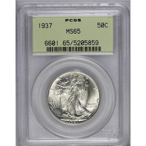 <B>1937<50C> MS65 PCGS.</B></I> A lustrous yellow-gold Gem with pleasing sharpness on the skirt lines and Liberty's head. Marks are minimal, and the eye appeal is exceptional. Encased in an older green label holder.