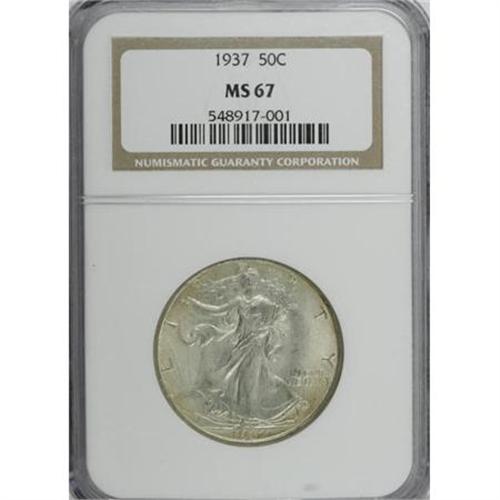 <B>1937 50C MS67 NGC.</B></I> A boldly impressed Superb Gem, strongly lustrous with gold-gray and tan toning that embraces each side. Beautifully preserved and a captivating survivor from this Depression-era issue. NGC has graded just two numerically finer pieces (3/08).<BR><BR><B>Coin Engraver:</B> Adolph A. Weinman<BR><BR><b>Shipping:</b> Coins & Currency (<a target="_blank" href="http://www.heritageauctions.com/common/shipping.php">view shipping information</a>)