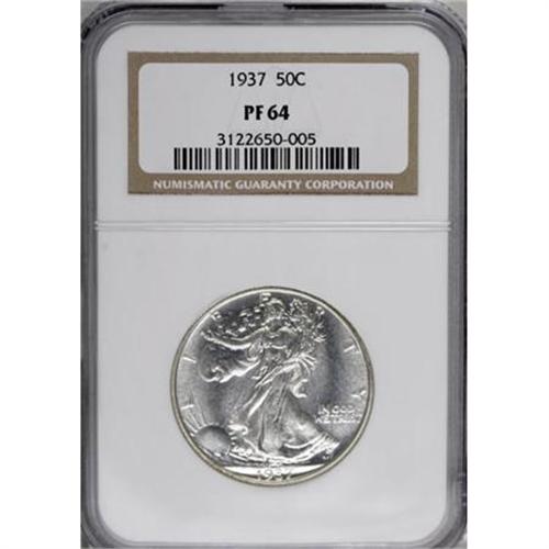 <B>1937 50C PR64 NGC.</B></I> A minimally toned and delightful near-Gem representative of this second-year proof Walker issue, sharply struck and pleasing. Only a few tiny hairlines in the fields preclude a finer designation.<BR><BR><B>Coin Engraver:</B> Adolph A. Weinman<BR><BR><b>Shipping:</b> Coins & Currency (<a target="_blank" href="http://www.heritageauctions.com/common/shipping.php">view shipping information</a>)