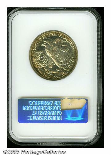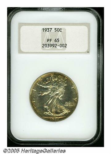 <B>1937<50C> PR65 NGC.</B></I> Colorful copper-golden toning circles the borders on each side of this nicely mirrored proof. Gem quality throughout.